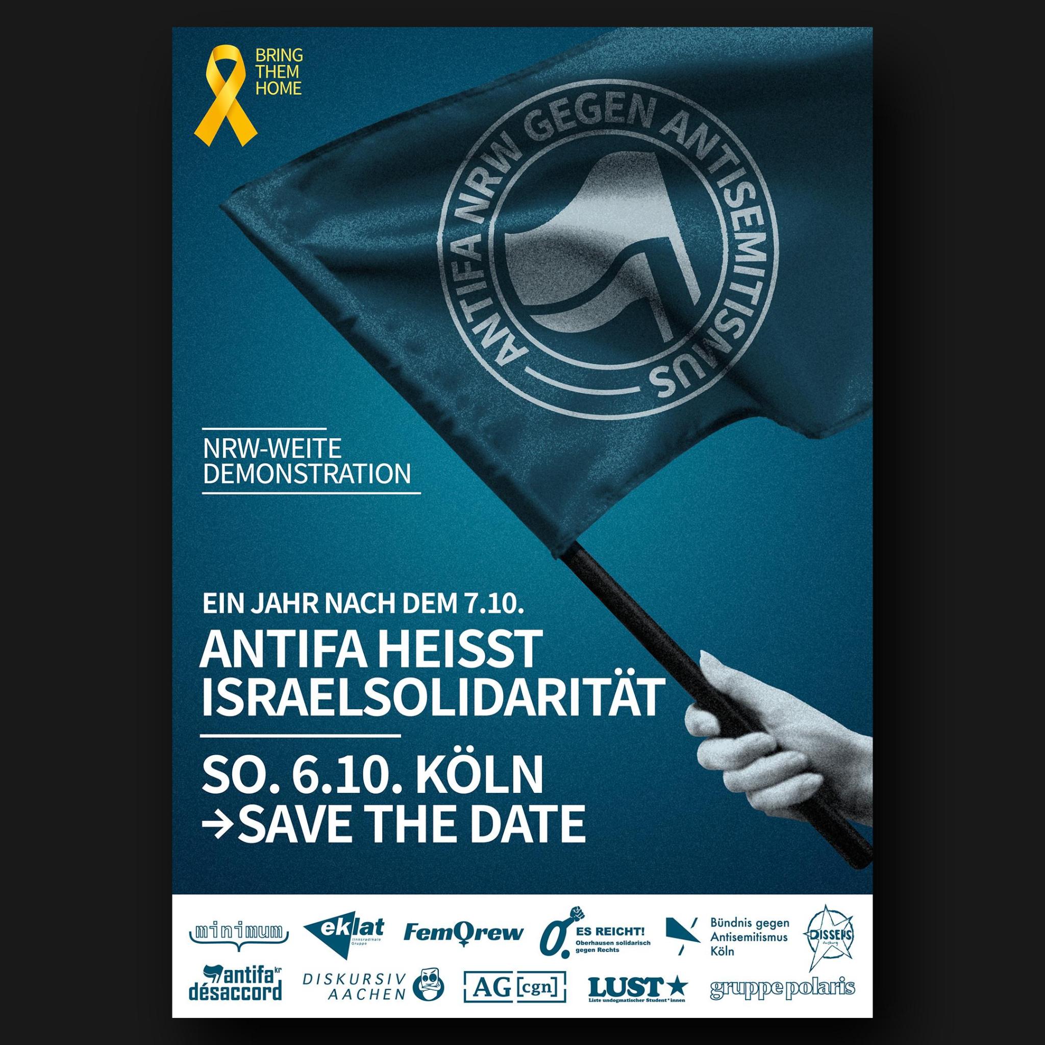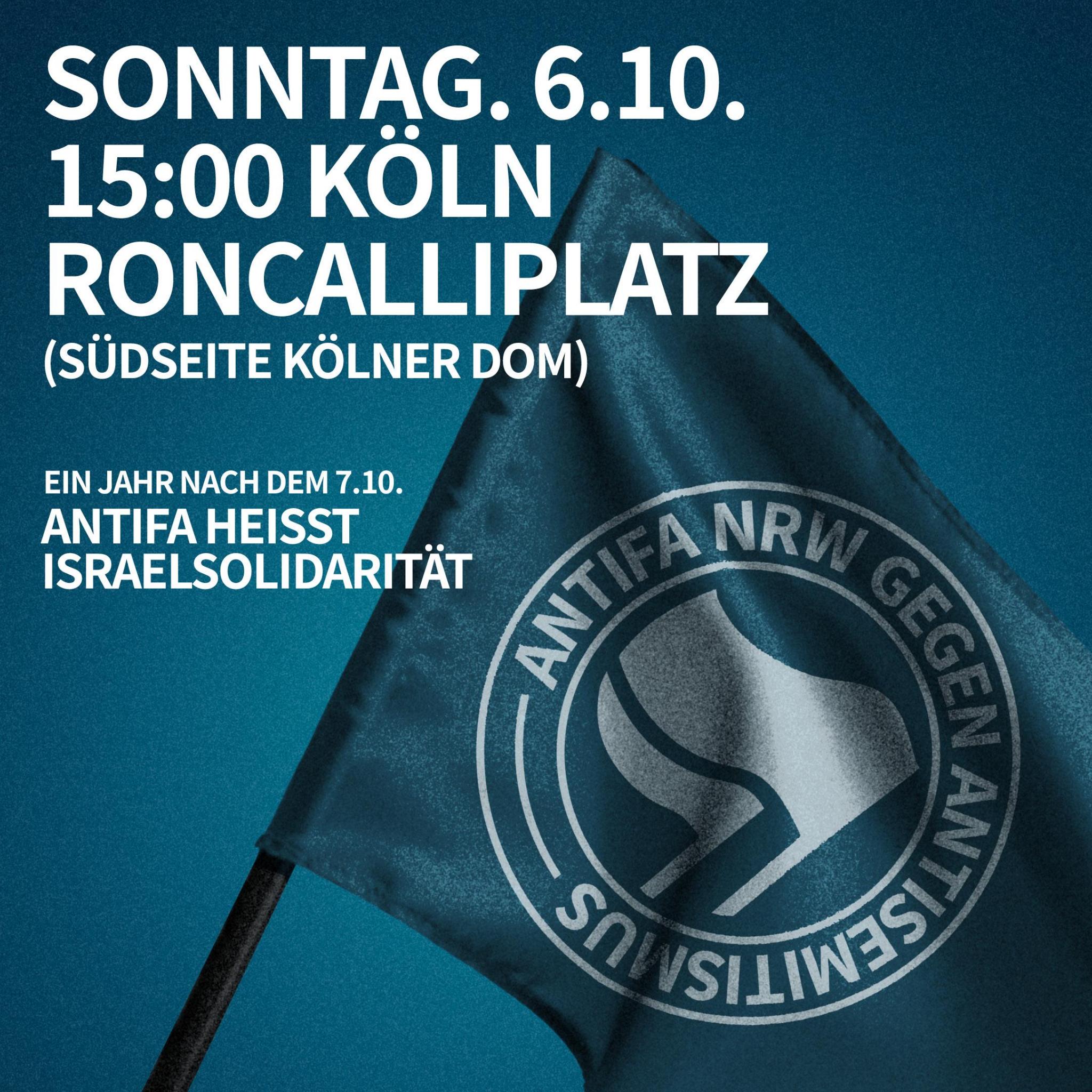 NRW-weite Antifademonstration gegen Antisemitismus am 6.10. in Köln: “Ein Jahr nach dem 7.10. – Antifa heißt Israelsolidarität”